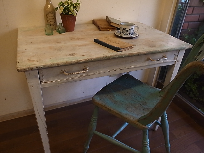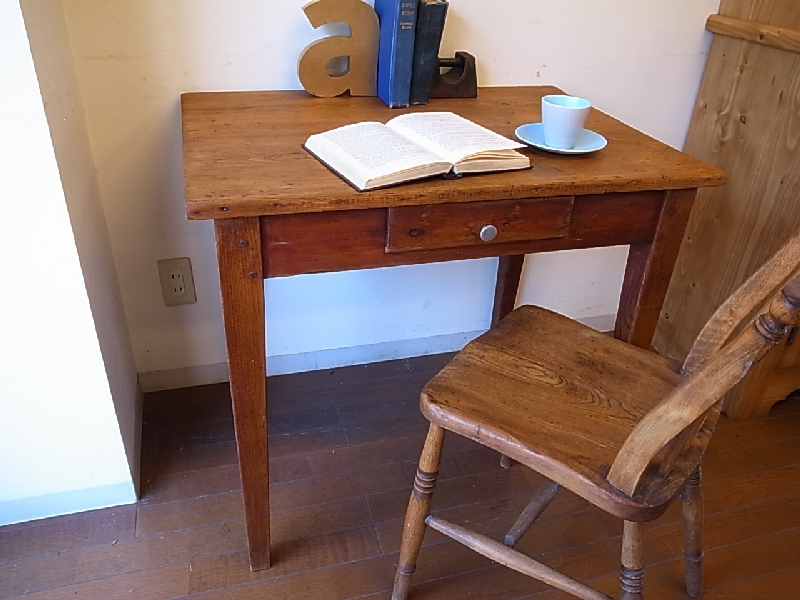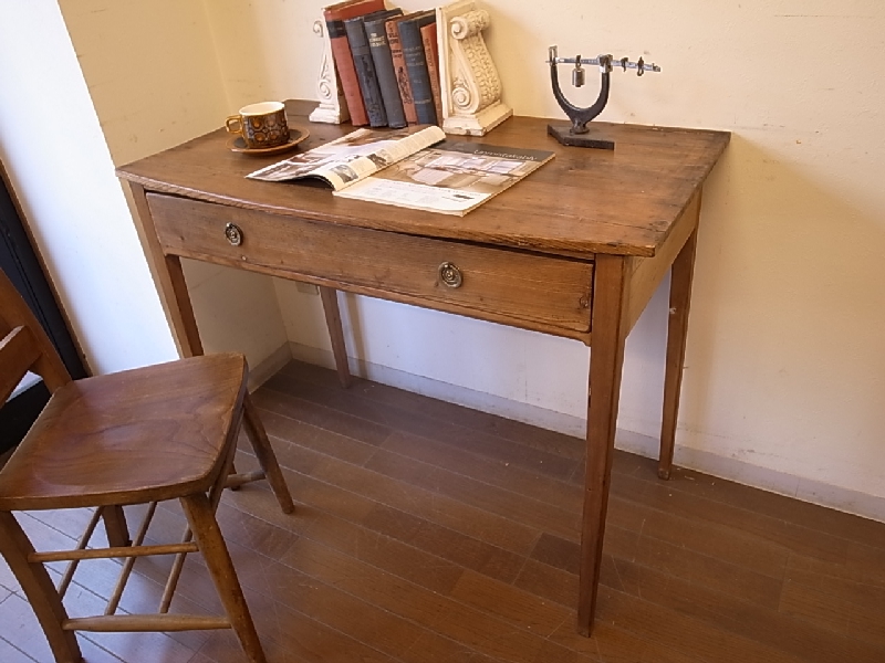 シャビーなフレンチデスクSIZE W90 D54 H76 | 細長いテーブルSIZE W121.5 D64.5 H75 | ほぼ正方形パインテーブルSIZE W104 D100.5 H76 |